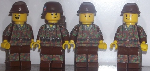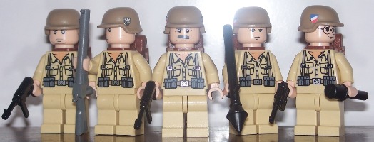 This is my German Army, Shown above are standard Heer Infantry. When Lego came out with the German figs in the Indiana Jones set I was overjoyed, all I needed to do was give them some Brickarms, Brickforge Helmets, and some emblem stickers on the Helmets, and then they were perfect.