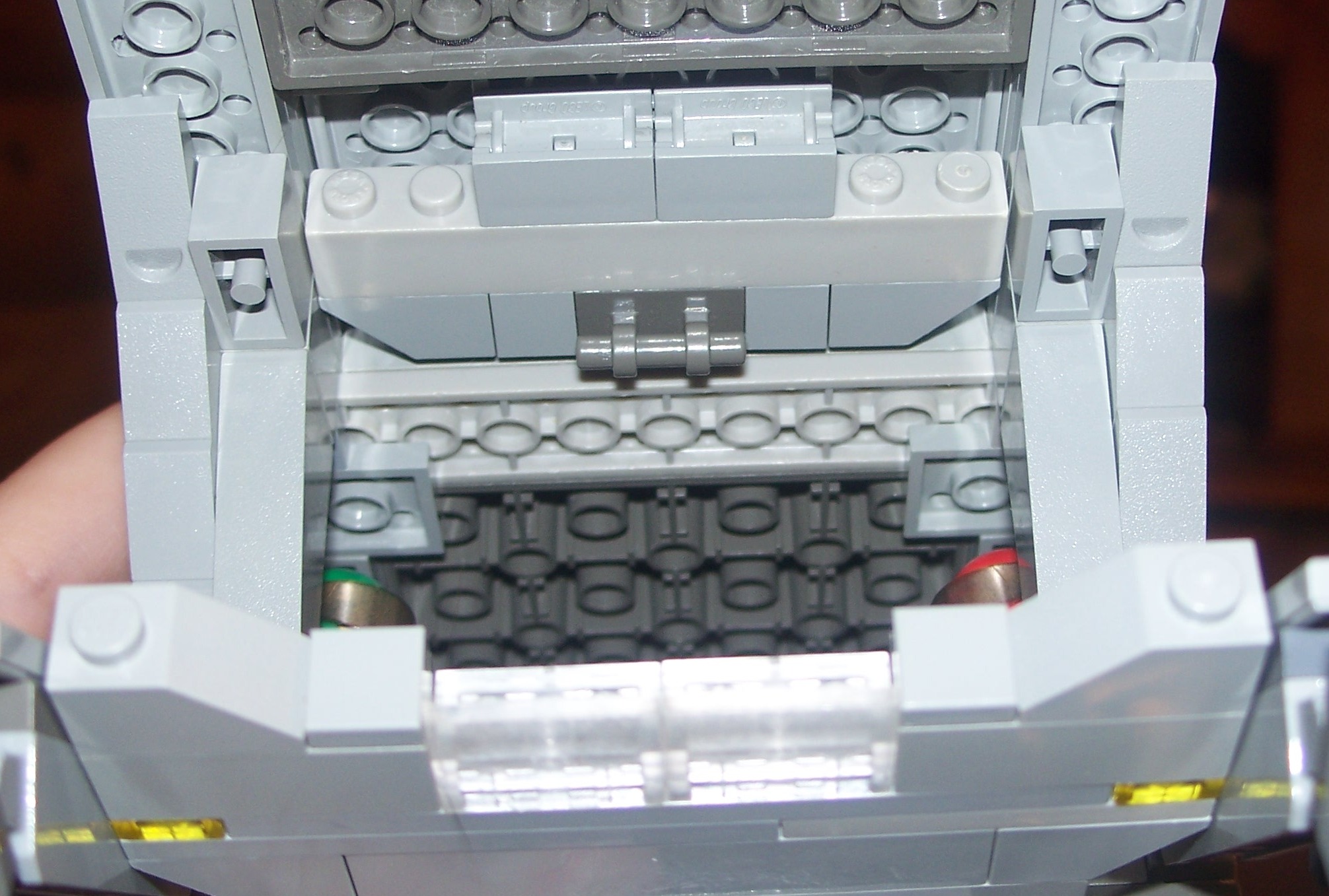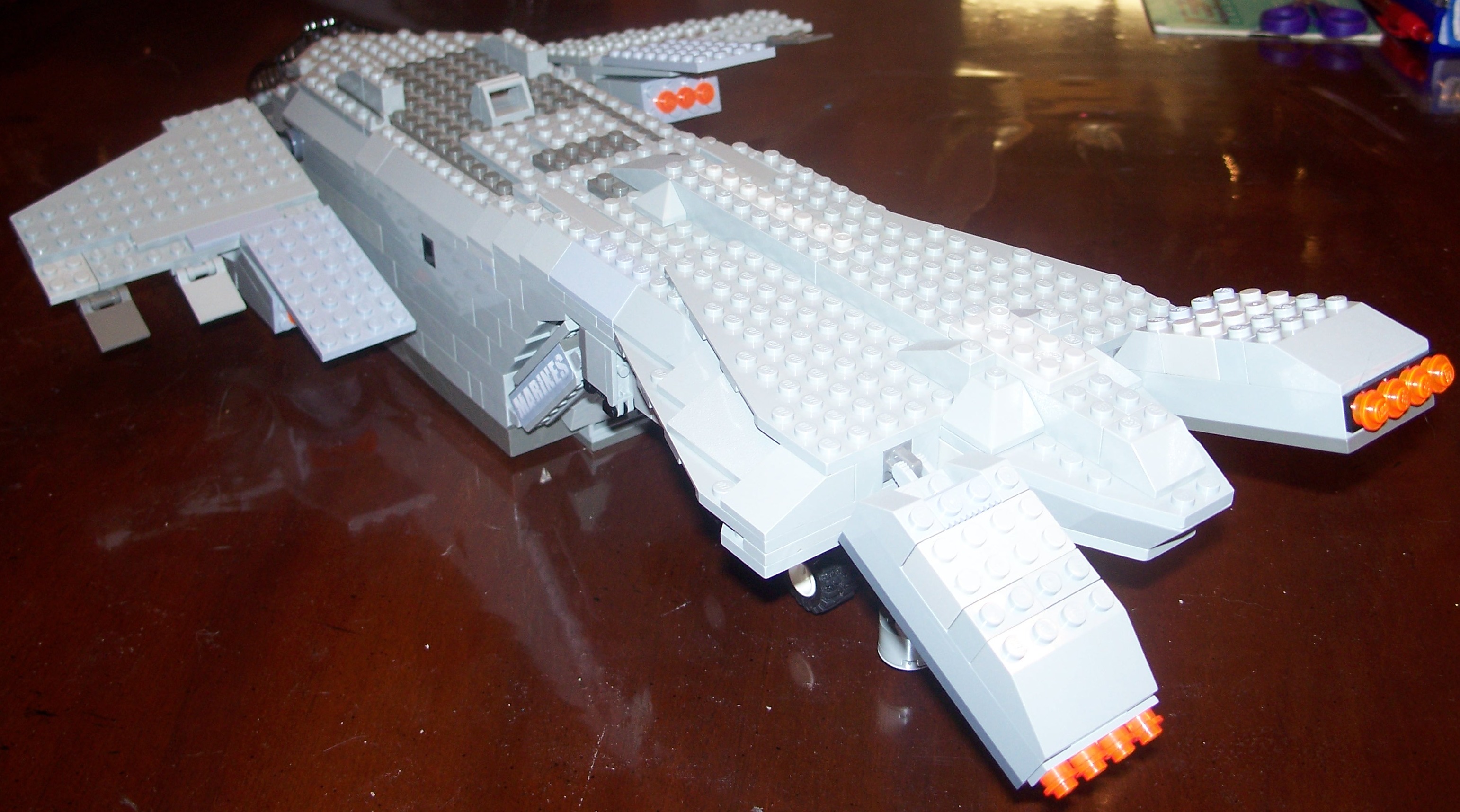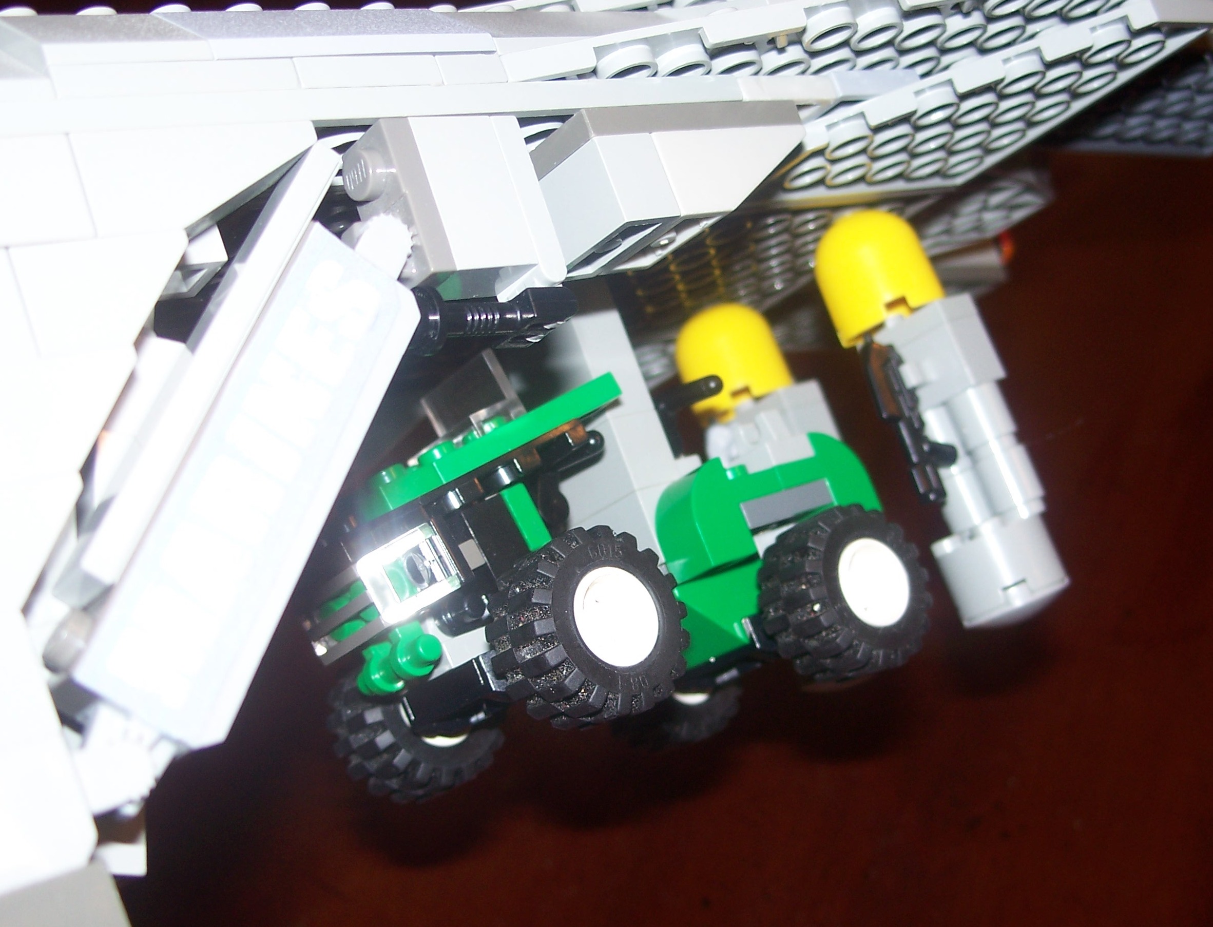 The roof easily comes off, there is a weapons rack, and it can seat up to 10 minifigures. I think my Pelican came out a little on the wide side, but I will eventually make a new one.