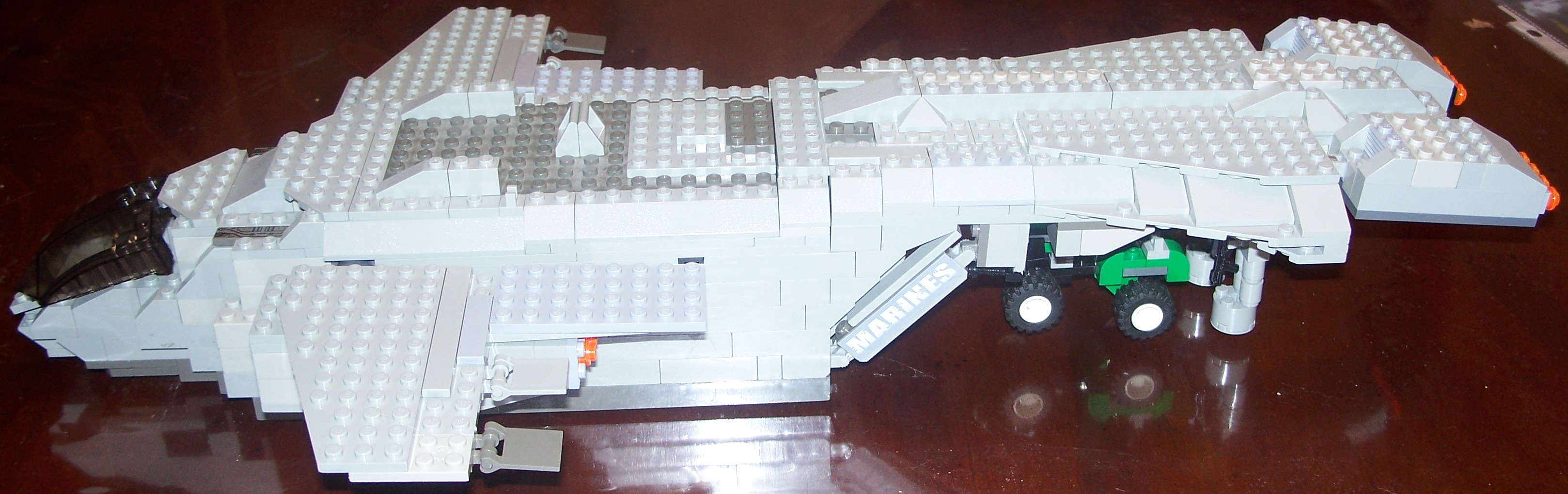 The UNSC Pelican Drop ship, seen in all Halo games so far, it can carry troops, and vehicles. Although you can't pilot it in Halo, Halo 2, Or Halo 3, you can fly them in the downloadable Halo Custom Edition for the PC.