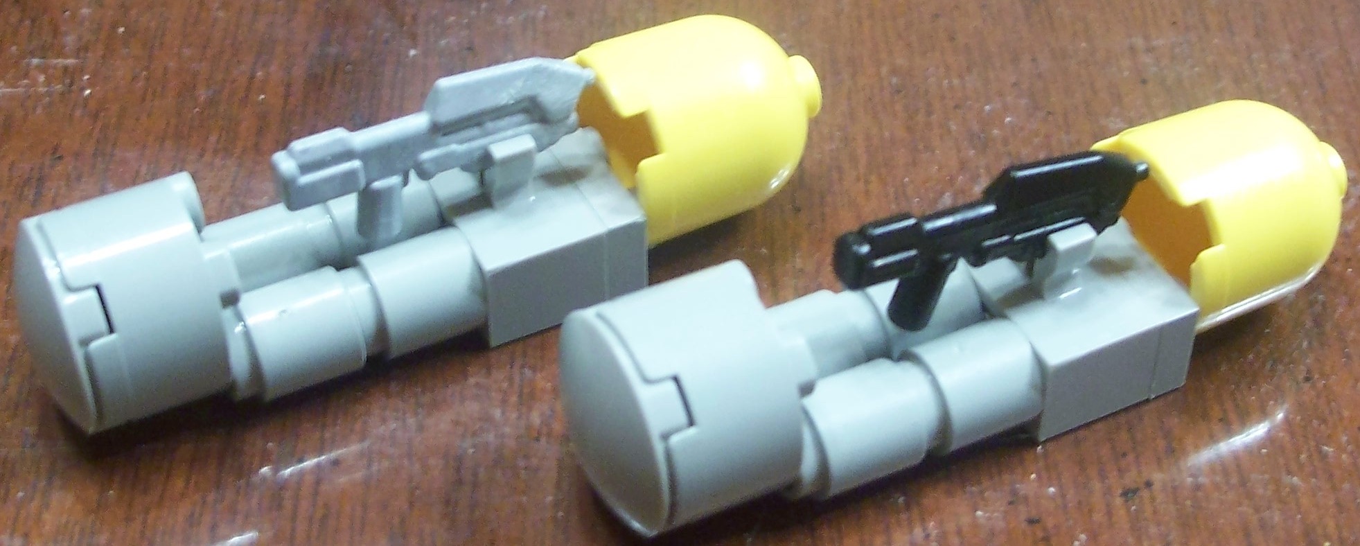 The Weapon Drop Pods are quite easy to build, the guns are from Brickarms.
